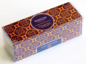 Flickering 6 pack T-Lights are made in a clear flame resistant poly carbonate t-cup. When lit your candle will Flicker through the cup adding ambiance to your home while releasing a gentle fragrance.