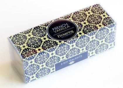 Flickering 6 pack T-Lights are made in a clear flame resistant poly carbonate t-cup. When lit your candle will Flicker through the cup adding ambiance to your home while releasing a gentle fragrance.